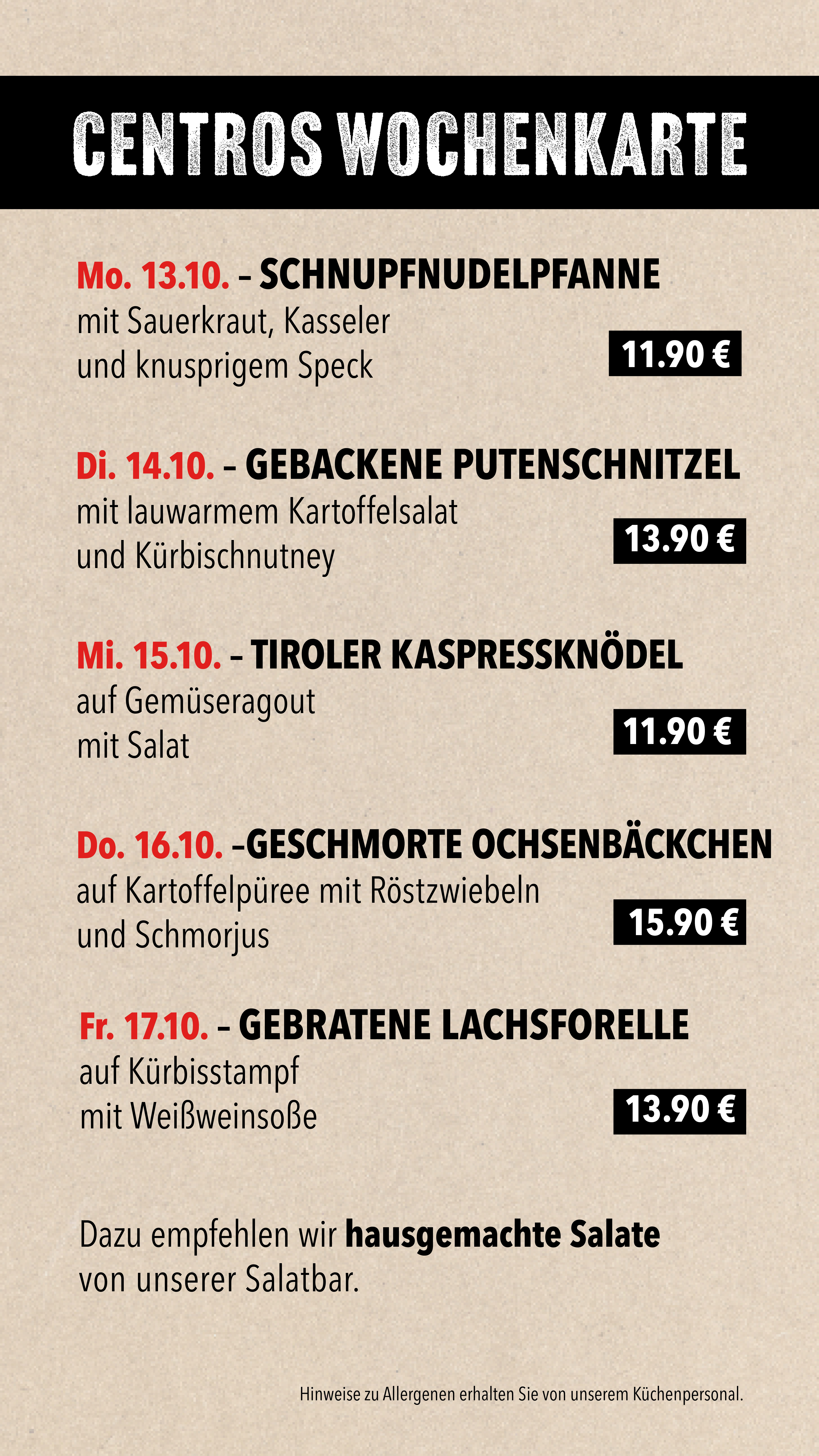 Unsere Wochenkarte