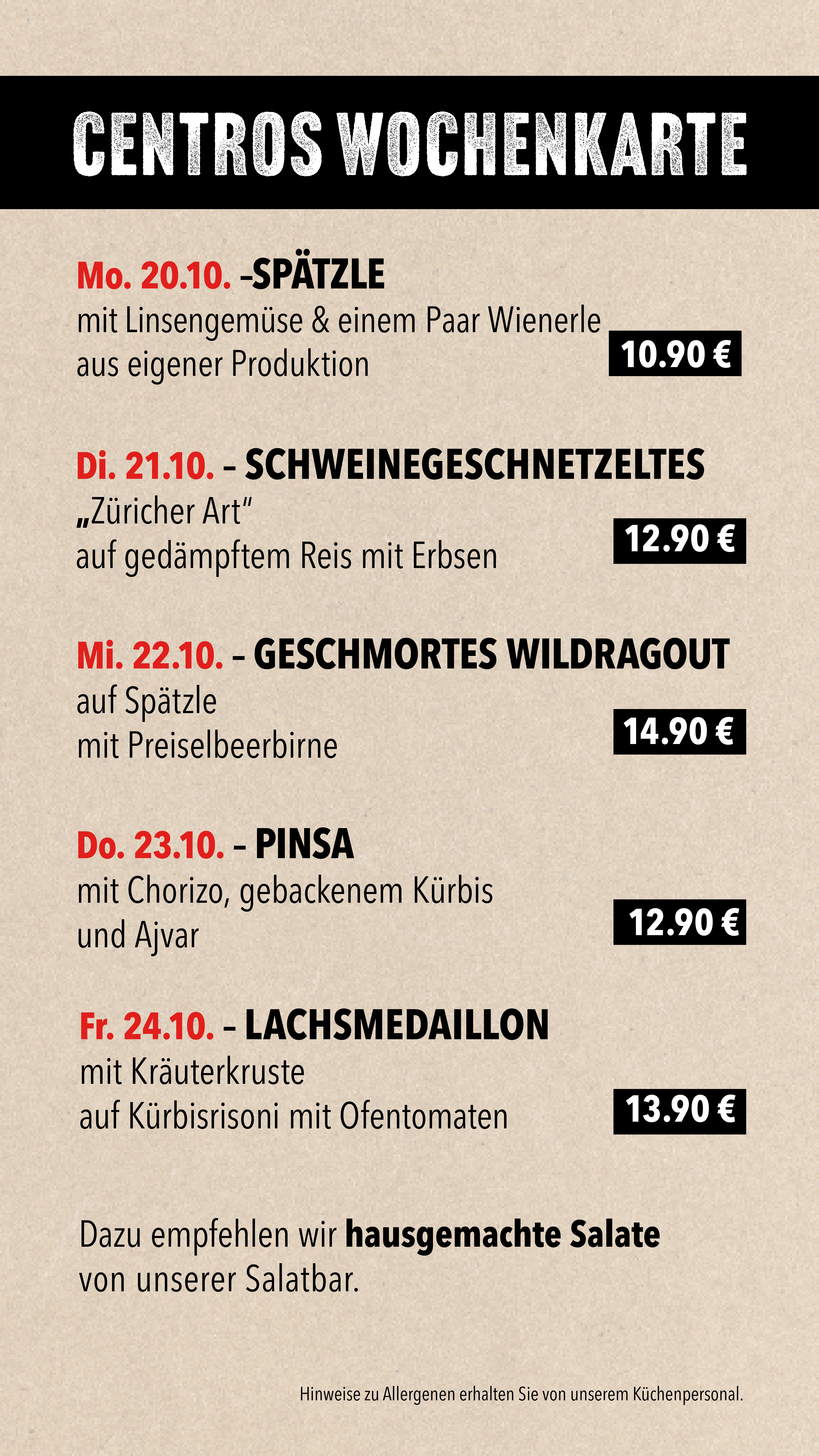Unsere Wochenkarte